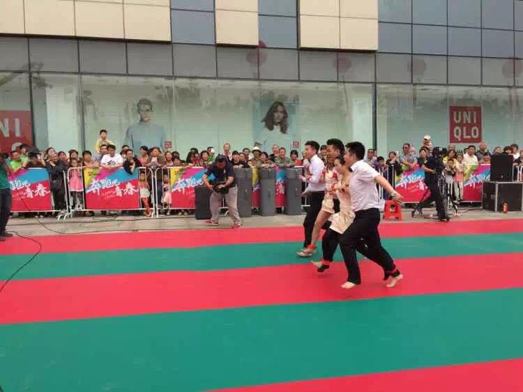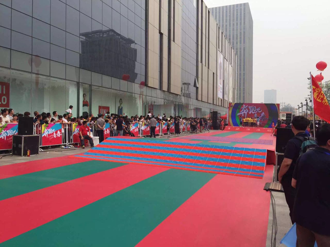 石家莊萬達廣場奔跑吧青春活動現場運動地膠