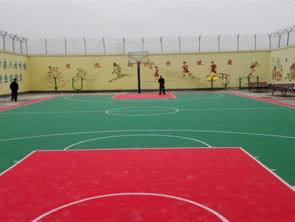 2、安裝簡單,體現(xiàn)它的“拼裝”性能,邊緣以鎖扣銜接,基本屬于純手工作業(yè)。工期短,一個500㎡的籃球場,包括畫線四個人一天即可施工完畢。平整水泥地即可。無保養(yǎng)期,安裝好即可使用。