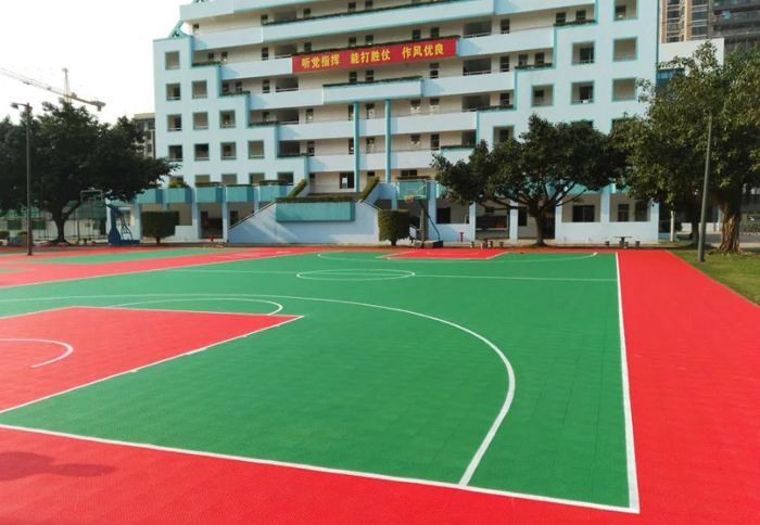 現在越來越多的籃球場都在使用懸浮拼裝運動地板,懸浮拼裝運動地板使用環保材料生產而成,環保健康。懸浮拼裝運動地板顏色多樣,可以設計出不同顏色的球場,給予球員不一樣的運動感受。懸浮拼裝運動地板場地效果好,不浮夸耀眼,不吸光不反光不刺眼,能帶給運動員更舒適的視覺感。同時,對于籃球這類運動場地,其不同的顏色搭配能形成更鮮明和諧的對比,懸浮拼裝運動地板適合用于室外籃球場。