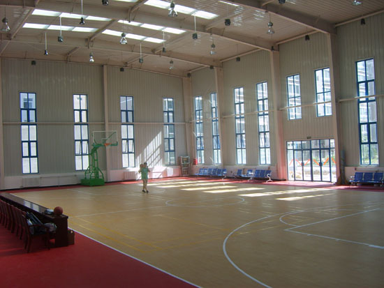 2、施工速度比較:一般一個標準的籃球場地實木地板施工需要15-20天,而PVC運動地板的施工需要5-7天就可以完成。